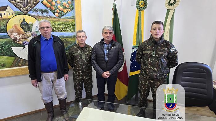 Nesta quarta-feira (30), o 1º Tenente QAO Flavio Airton de Souza Côgo, responsável pelo Posto de Recrutamento e Mobilização (PRM), esteve em visita ao município acompanhado do Soldado Andrey Cogo Teles e do Secretário da Junta de Serviço Militar (JSM), Henrique Valentin Klamt.